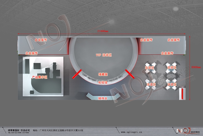 巧妙的運用紅色、白色作搭配,著重突出品牌和產品的展示,使整個展位時尚新穎。