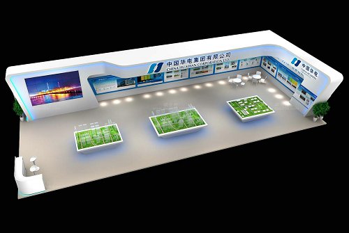 契合中國華電的品牌形象和產品特性,采用異形天花結構,再搭配燈具燈光的效果,襯托出展位大氣、豪華的氛圍,突出一種簡約、時尚的品味。