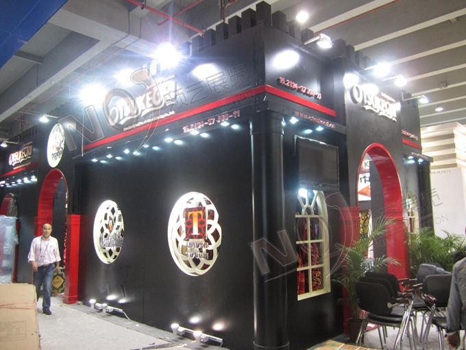 巧妙的運(yùn)用紅色、黑色作搭配,著重突出品牌和產(chǎn)品的展示,使整個展位時尚新穎。