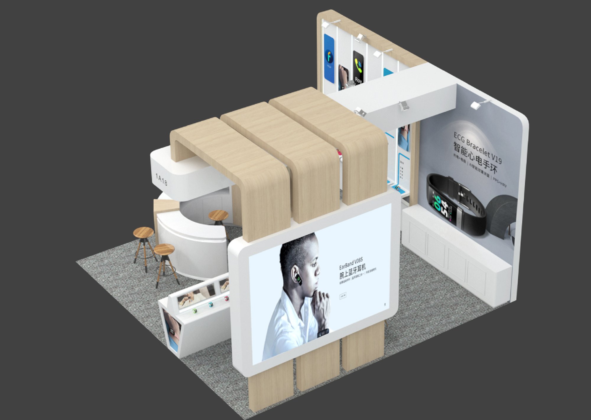 巧妙的運(yùn)用科技燈光作搭配,著重突出品牌和產(chǎn)品的展示,使整個(gè)展示空間時(shí)尚新穎巨有活力。