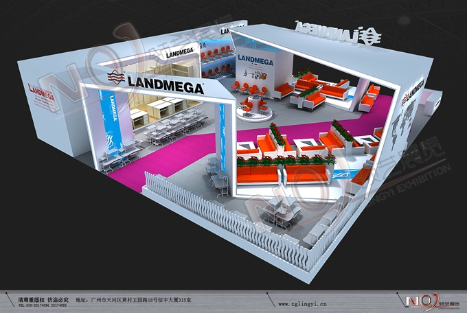 契合蘭馬克的品牌形象和產(chǎn)品特性,采用立體結(jié)構(gòu),再搭配燈具燈光的效果,襯托出展位商務(wù)、場景化的氛圍,突出一種尊貴、精致的時尚品味。