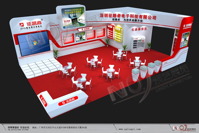 巧妙的運(yùn)用紅色、白色做搭配,著重突出品牌和產(chǎn)品的展示,使整個(gè)展位簡(jiǎn)潔大方又高端大氣。