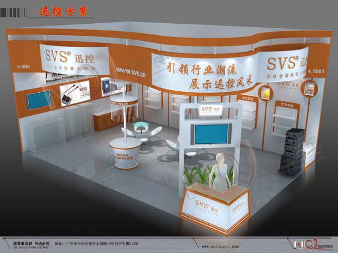 契合的迅控品牌形象和產品特性,采用弧形、矩形結構,再搭配燈具燈光的效果,襯托出展位簡約、便捷的氛圍,突出一種精致、簡約的時尚品味。