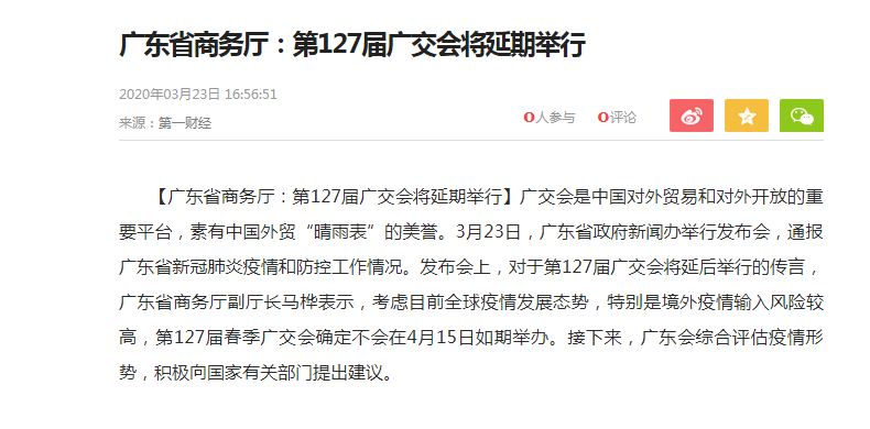 根據(jù)廣交會(huì)設(shè)計(jì)搭建公司領(lǐng)藝展覽了解到,3月23日,廣東省政府新聞辦舉行發(fā)布會(huì),發(fā)布會(huì)上,對(duì)于第127屆廣交會(huì)將延后舉行的傳言,省商務(wù)廳副廳長(zhǎng)馬樺表示,考慮目前全球疫情發(fā)展態(tài)勢(shì),特別是境外疫情輸入風(fēng)險(xiǎn)較高,第127屆春季廣交會(huì)確定不會(huì)在4月15日如期舉辦。接下來(lái),廣東會(huì)綜合評(píng)估疫情形勢(shì),積極向國(guó)家有關(guān)部門(mén)提出建議如需廣交會(huì)設(shè)計(jì)請(qǐng)聯(lián)系領(lǐng)藝展覽,希望我們能在廣交會(huì)會(huì)搭建上為您添磚加瓦,祝各位朋友收獲多多,滿(mǎn)載而歸!