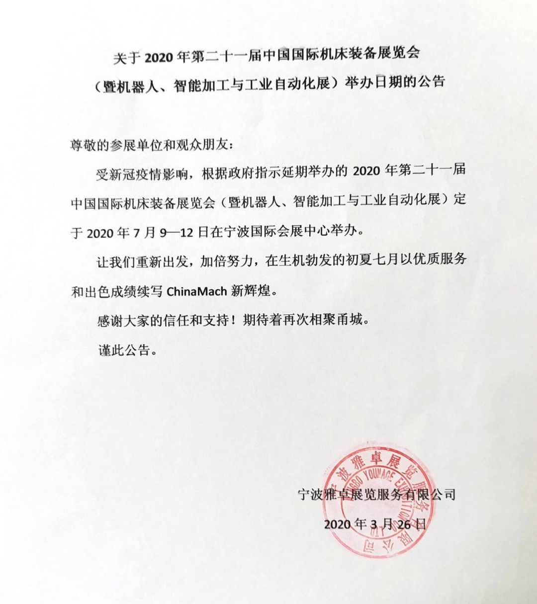 CIMES2020第十五屆中國國際機(jī)床工具展覽會(huì)將延期舉辦