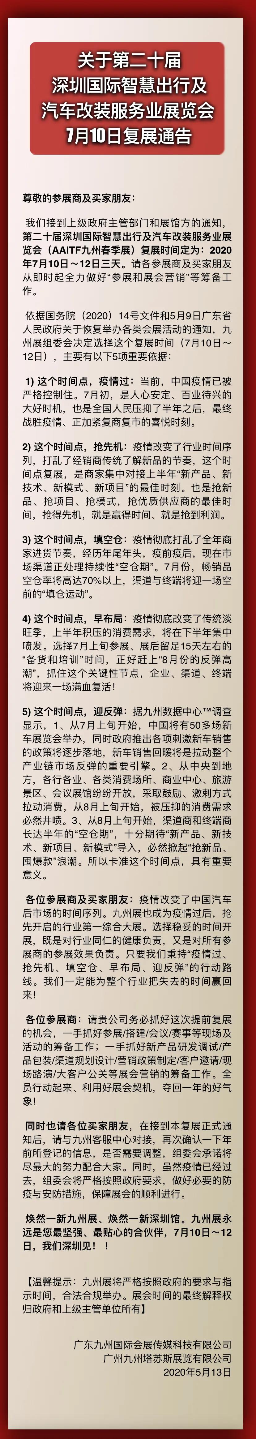 九州汽配展設(shè)計(jì)搭建公司領(lǐng)藝展覽了解到,AAITF,英文全稱為“Automotive Aftermarket Industry and Tuning Trade Fair ”,中文全稱為“汽車改裝服務(wù)業(yè)展覽會(huì)”將于2020年7月10-12日,在深圳國(guó)際會(huì)展中心(寶安)舉辦。如需展會(huì)設(shè)計(jì)請(qǐng)聯(lián)系領(lǐng)藝展覽,希望我們能在九州展搭建上為您添磚加瓦,祝各位朋友收獲多多,滿載而歸!