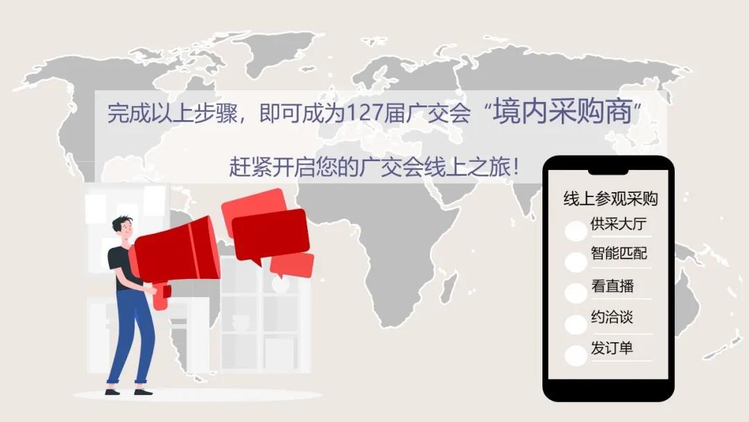 在此,誠邀廣大“境內采購企業”參加第127屆廣交會,體驗中國歷史最悠久的貿易盛會與強大互聯網技術的創新融合,共享全球商機,實現貿易高效對接。
