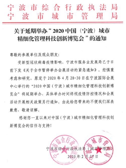 根據展臺設計搭建公司領藝展覽了解到,2020中國(寧波)城市精細化管理科技創新博覽會將延期舉辦。如需展臺設計請聯系領藝展覽,希望我們能在展位搭建上為您添磚加瓦,祝各位朋友收獲多多,滿載而歸!