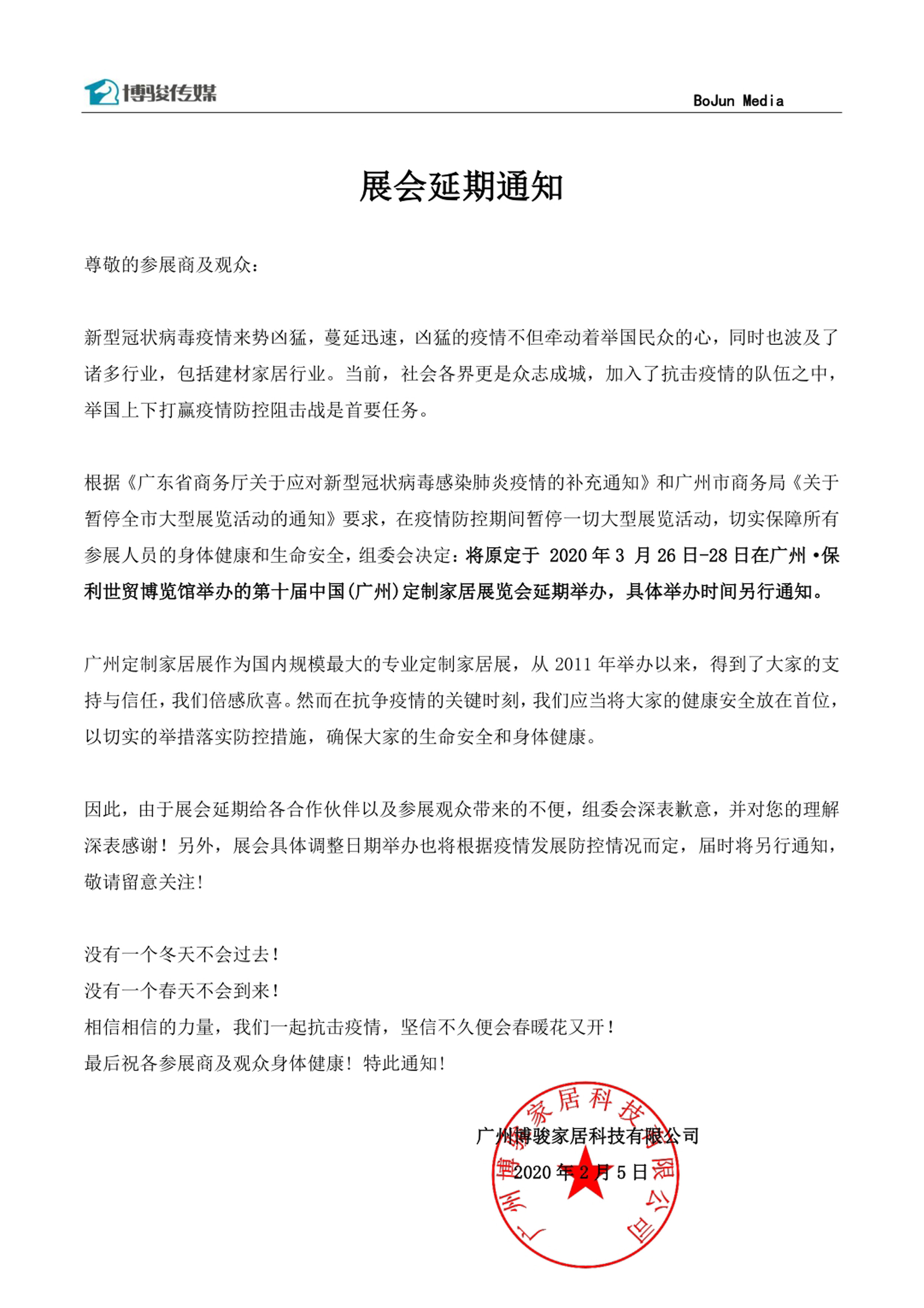 根據廣州定制家具展設計搭建公司領藝展覽了解到,將原定于 2020年3 月26日-28日在廣州·保利世貿博覽館舉辦的第十屆中國(廣州)定制家居展覽會延期舉辦,具體舉辦時間另行通知。如需廣州定制家具展設計請聯系領藝展覽,希望我們能在廣州定制家具展搭建上為您添磚加瓦,祝各位朋友收獲多多,滿載而歸!