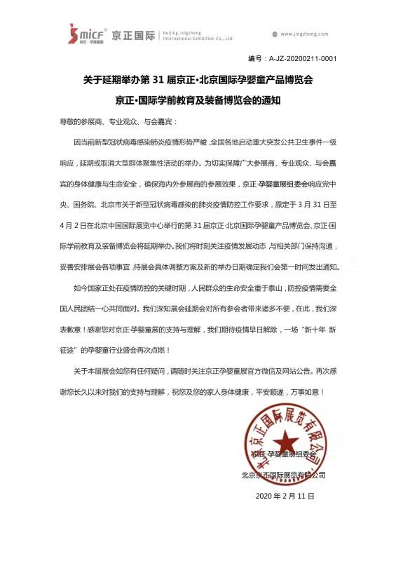 根據北京孕嬰童展設計搭建公司領藝展覽了解到,原定于2020年3月31日至4月2日在北京中國國際展覽中心舉辦的第31屆京正·北京國際孕嬰童產品博覽會將延期舉辦,具體展覽時間將視疫情另行通知。如需北京孕嬰童展展臺設計請聯系領藝展覽,希望我們能在北京孕嬰童展展臺搭建上為您添磚加瓦,祝各位朋友收獲多多,滿載而歸!