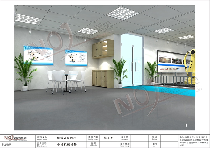 契合的中設(shè)機(jī)械品牌形象和產(chǎn)品特性,采用矩形結(jié)構(gòu),再搭配燈具燈光的效果,襯托出展位高端、時(shí)尚的氛圍,突出一種現(xiàn)代、大氣的時(shí)尚品味。