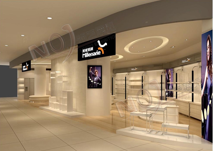 契合的美瓏美利品牌形象和產(chǎn)品特性,采用弧形、矩形結(jié)構(gòu),再搭配燈具燈光的效果,襯托出展位高端、時尚的氛圍,突出一種現(xiàn)代、歐美的時尚品味。