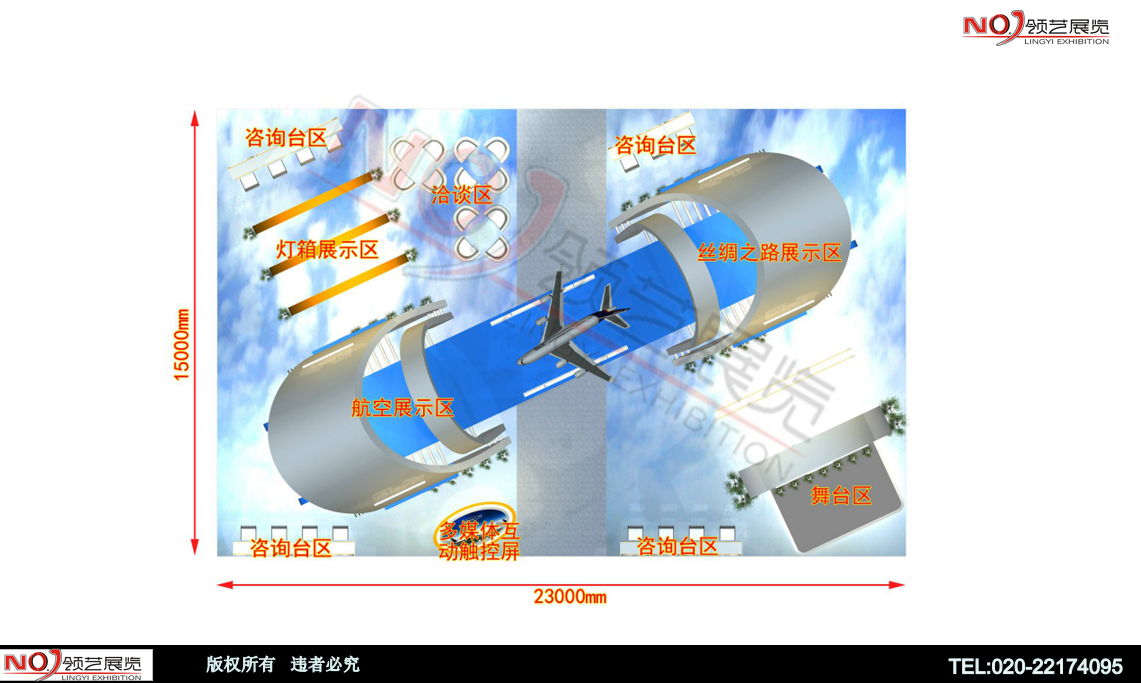 由航空飛機(jī)模型為創(chuàng)意主體,結(jié)構(gòu)采用弧形結(jié)構(gòu),展現(xiàn)海上絲綢之路國家的航空鏈接再搭配采用聲光電,襯托出展位大氣、豪華的氛圍,突出一種簡約、時(shí)尚現(xiàn)代感十足的國際化效果。