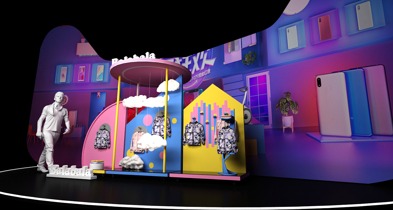 契合巴拉巴拉的品牌形象和產(chǎn)品特性,采用開(kāi)放式結(jié)構(gòu),再搭配燈具燈光的效果,襯托出直播間大氣、豪華的氛圍,突出一種簡(jiǎn)約、時(shí)尚的品味。
